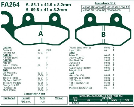Wersja SFA HH wykorzystuje technologię sintermetalową, co znacząco poprawia właściwości okładzin, szczególnie w skuterach o zacięciu sportowym lub osiągających znaczące prędkości.